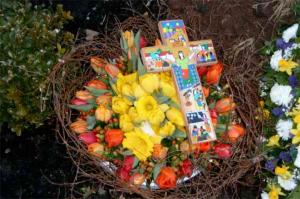 Zu Hause schrieben wir eine Rundmail an Freunde und Bekannte. Die Leute, die wir zur Beerdigung dabei haben wollten, riefen wir persönlich an. Wir planten die Beerdigung selbst. Ich gestaltete den Sarg farblich, schlug ihn mit dem Lammfell aus und legte Kissen, Deckchen sowie Spieluhr hinein. Vor der Beerdigung ließen wir nochmals den Sarg aufmachen. Ich wollte den Kleinen einfach noch sehen. Mein Mann trug den Sarg von Kieran von der Leichenhalle zum Grab und ließ den Sarg mit hinunter. Wir waren ungefähr 30 Personen, enge Verwandte, einige Freunde.