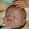 - die Oberlippe ist doppelt gespalten, Lippen-Kiefer-Gaumenspalte