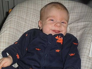 Ole kommt zwei Wochen nach dem ET durch einen Kaiserschnitt zur Welt, nachdem sein kleines Herz von der einsetzenden Geburt zu sehr belastet ist. Er ist unser ganzer Stolz! Eine Trisomie 21 kann per Blickdiagnose ausgeschlossen werden. Ole hat zwar Mühe mit dem Zunehmen aber wir verbringen trotz Startschwierigkeiten drei Wochen glücklich zu Hause. Da wir von seiner schweren Chromosomenstörung (wir finden: zum Glück!) erst nach 7 Woche erfahren, sind wir hartnäckig beim Stillen und heute natürlich froh, dass Ole trinken kann. Nach etwa vier Wochen folgt eine schwere Zeit mit Atemproblemen und zunehmend länger werdenden Krampfanfällen. Wir verbringen viel Zeit im Krankenhaus und werden nach einiger Zeit mit der Diagnose Trisomie 18 (später genauer spezifiziert als Partielle Trisomie 18) und der Prognose auf einen baldigen Tod von Ole nach Hause entlassen. Zusammen mit dem Kinderpalliativteam, welches uns insbesondere im ersten halben Jahr zu Hause liebevoll betreut, entwickeln wir trotz vieler Probleme Routinen im Alltag. Ole wird mit Hörgeräten versorgt, bekommt ein Urostoma gelegt und es werden Strategien zum Umgang mit den täglichen Krampfanfällen entwickelt. Das Palliativteam ist es auch, welches uns im Gegensatz zu vielen Ärzten immer wieder Hoffnung macht und uns aufbaut.