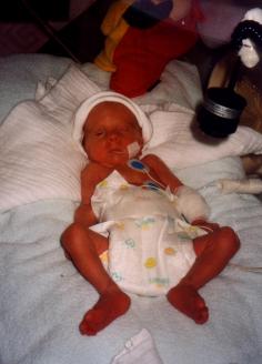 Unsere Svenja wurde um 17.46 Uhr mit einem Gewicht von 1270 Gramm und 37 cm aus Beckenendlage geboren. Sie zeigte bei der Geburt keinerlei Spontanatmung, somit wurde sie per Sauerstoffmaske beatmet. Da ihre Nase nicht vollständig durchgängig war, legte man ihr einen Tubus zur Beatmung. Meinem Mann sagten sie, Svenja sei zwar klein, aber gesund.