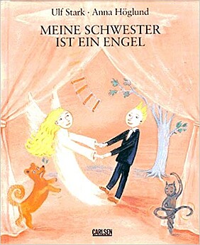Ulf Stark / Anna Höglund: "Meine Schwester ist ein Engel", Carlsen Verlag, ISBN 3551514763. Ulf hat ein richtiges Prachtexemplar von Schwester. Mit ihren langen blonden Haaren und ihren grauen Augen meckert sie nie über Ulf, oder weiß alles besser, so wie andere Schwestern. Sie ist richtig lieb und lustig und "weil niemand sie erzogen hatte, war sie auch wild und frech". Sie hat nur einen gravierenden Fehler. Niemand außer Ulf kann sie sehen, denn sie ist schon lange vor Ulfs Geburt gestorben. Eines Tages beschließt Ulf, seiner Schwester alles Wichtige in seinem Leben zu zeigen: Seinen Freund Björn, den Kiosk, an dem es die leckersten Sahnebonbons und riesige Schoko-Riegel gibt, und natürlich den Baum, auf dem diese am besten schmecken. Einen richtig guten Film schaut er auch mit ihr zusammen an. Dass die Erwachsenen komisch grinsen und hinter vorgehaltener Hand über ihn lachen und tuscheln, ist Ulf völlig gleichgültig. Denn für die Unternehmungen mit seiner Schwester muss er selbstverständlich das rote Kleid von Mutti anziehen, das er extra abgeschnitten hat und die wunderschöne blonde Perücke mit den Engelslocken aufsetzen, sonst wäre er doch nicht wie seine Schwester. Das müsste doch eigentlich jeder verstehen, selbst ein Erwachsener. Ulf Stark hat in seiner gelungenen Erzählung die ganz persönliche Verarbeitung des Todes der Schwester, aus der Sicht eines kleinen Jungen beschrieben. Seine Geschichte ist glaubhaft. Am Ende verabschiedet Ulf seine Schwester mit dem Wind. Er hat es geschafft, mit dem Tod seiner Schwester auf seine Art fertigzuwerden. --Manuela Haselberger Kurzbeschreibung Ulfs Schwester ist vor ihrer Geburt in Mamas Bauch gestorben. Jetzt ist sie ein Engel und ist immer in Ulfs Nähe. Niemand in der Familie ahnt das, denn niemand kann sie sehen. Aber Ulf, der kann sie sehen... (Ab 5 Jahre.)